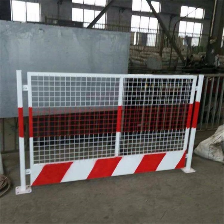基坑防护栏杆产品规格参考一:1.2*2m,立柱1.2高,栏杆1.2*2m;产品用材:立柱50*50*1.2mm方钢,横杆20*30*1.2mm厚度,网孔50*50*3.5mm,底部铁板0.8mm厚;表面处理为喷塑,常见的是黑黄,红白颜色。