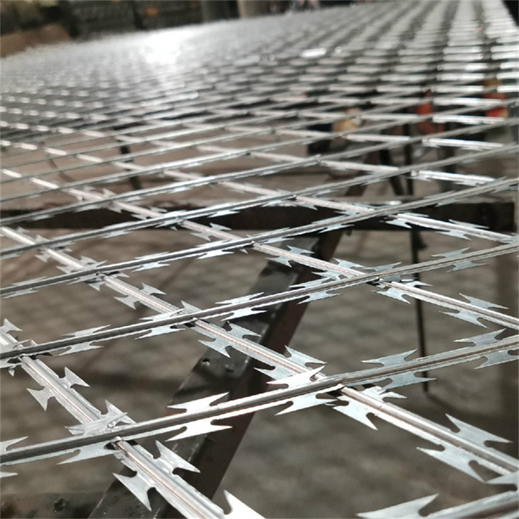 刀刺片隔离网产品规格:刀片线芯:2.5mm;刀片:镀锌钢板;工艺:热镀锌-冲压;刀片型号:BTO-22