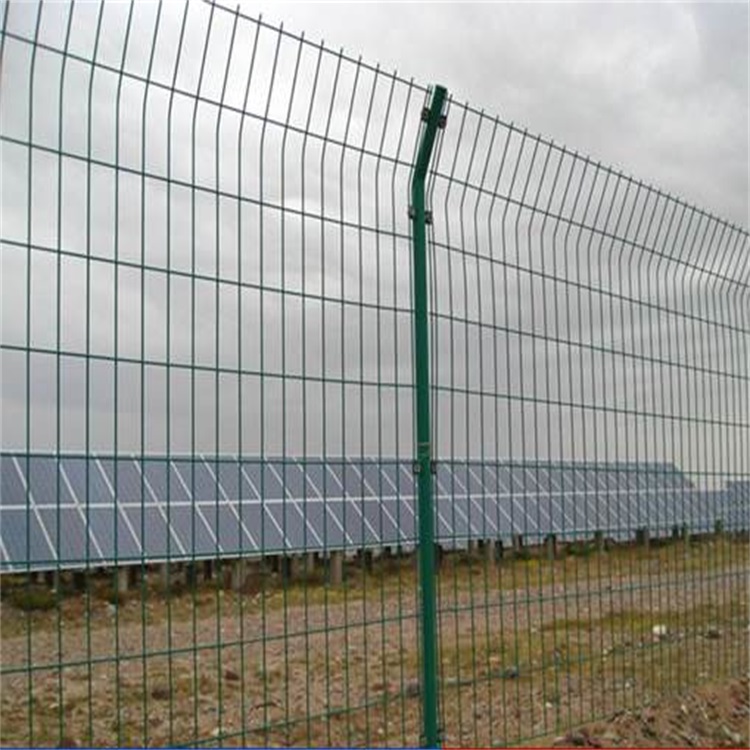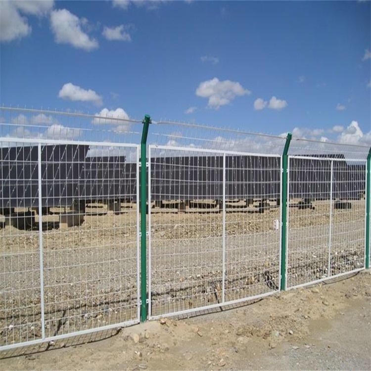 光伏围栏网采用优质低碳钢丝作为原材料,表面浸塑具有日久抗腐蚀、抗紫外线不怕雨淋的特点。是专门为光伏电站设计的防护设备,主要是用在光伏电站各个区域的防护和隔离。它有效防止了光伏电场内外的人身安全和变电器等设备的防盗,是电站首选的防护产品,具有较长的使用年限。